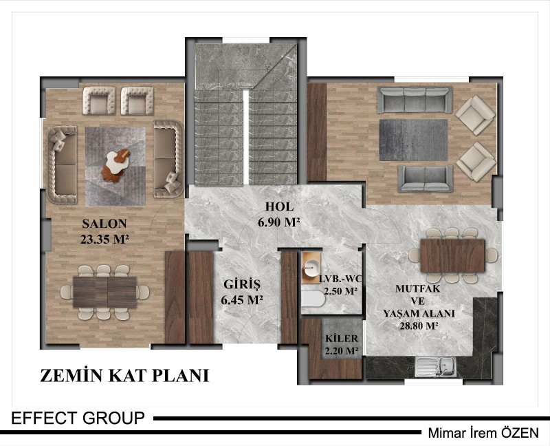 GİRİŞ KAT : SALON+OTURMA ODASI + MUTFAK